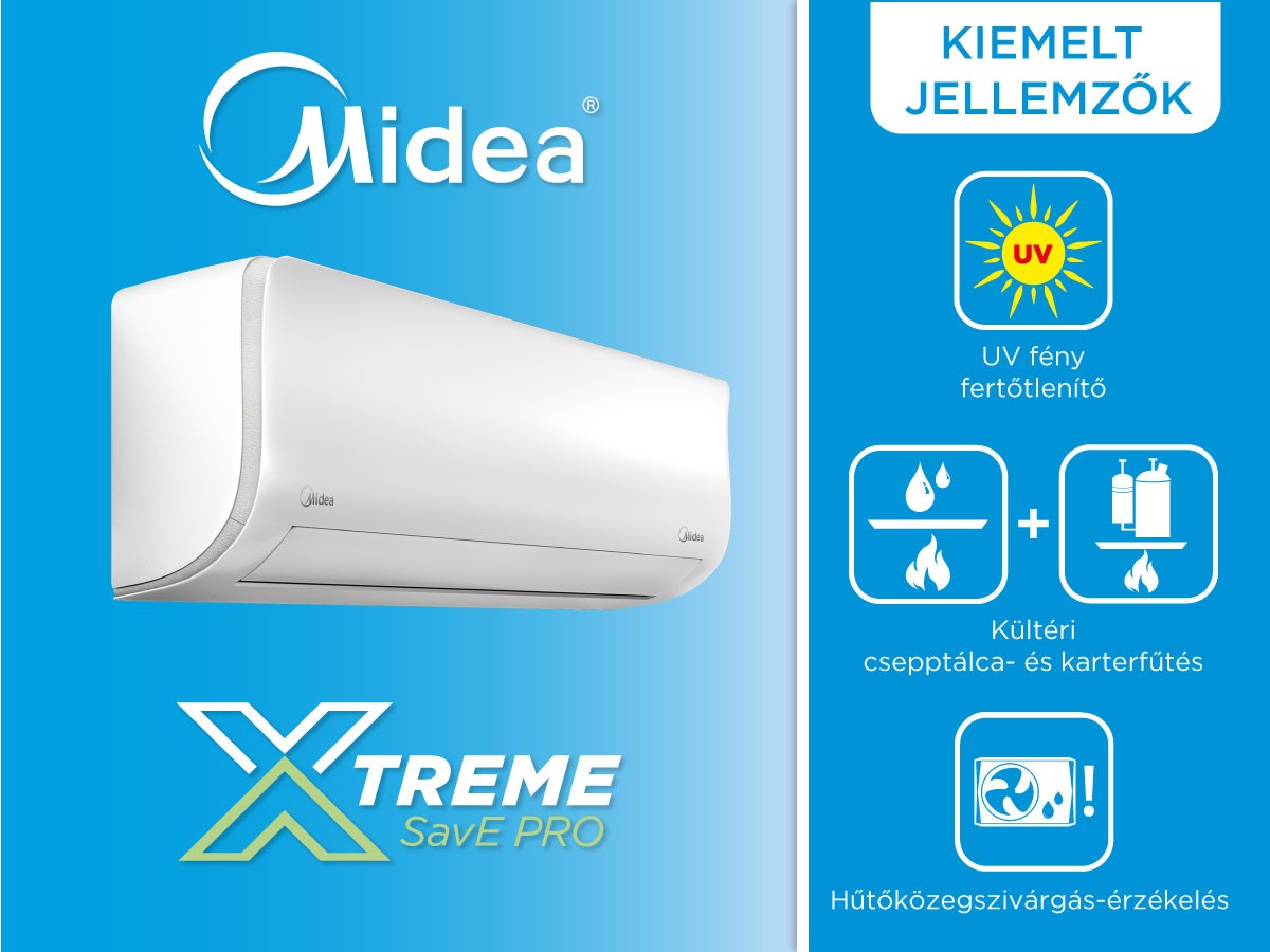 MIDEA – MGP2X-12-SP Xtreme Save PRO! oldalfali split (R32, 3,5 kW) – klíma csomag 3,5 kw PRO!