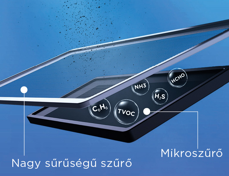 A belső légtérbe negatív ionokat (aniononok) állít elő, ezzel semlegesíti a zárt terek levegőjében jelen lévő szennyező részecskéket.